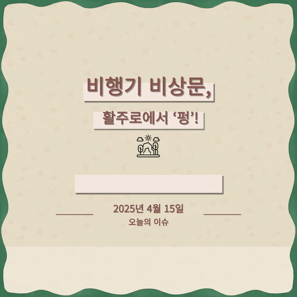 - 무슨 일? 비행기 활주로 진입 중, 비상문 열림 → 슬라이드 작동 → 비행기 결항