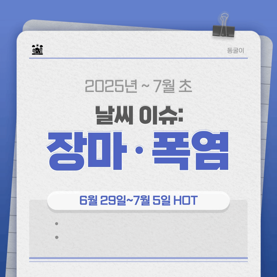 6월 말에서 7월 초 사이, 장마와 폭염, 예보 변화 가능성까지 모두 경험할 수 있는 다채로운 날씨 구간입니다.